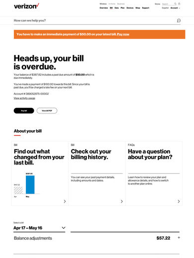 I thoroughly enjoyed working out how we could leverage the phases of the billing cycle to do this in a way that was transformative within the realms of feasibility given the legacy billing systems that constrained us. This system allowed us to create dynamic copy at every stage of the customer’s billing cycle to personalise content on a massive scale and encourage customers to self-serve billing queries they were likely to have at that phase. I saw first-hand in user testing every sprint how our new messaging resonated with Verizon customers, and worked through any feedback closely with my team to ensure the content reflected the concerns of users.